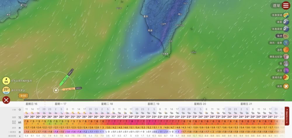 利用小程式,此為目前預測,請調整欲查詢之日期時間,資料來自windy.com