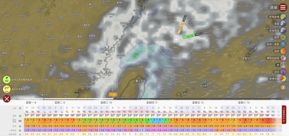 利用小程式,此為目前預測,請調整欲查詢之日期時間,資料來自windy.com