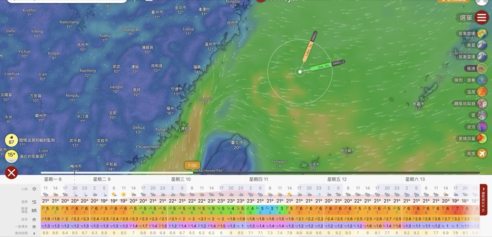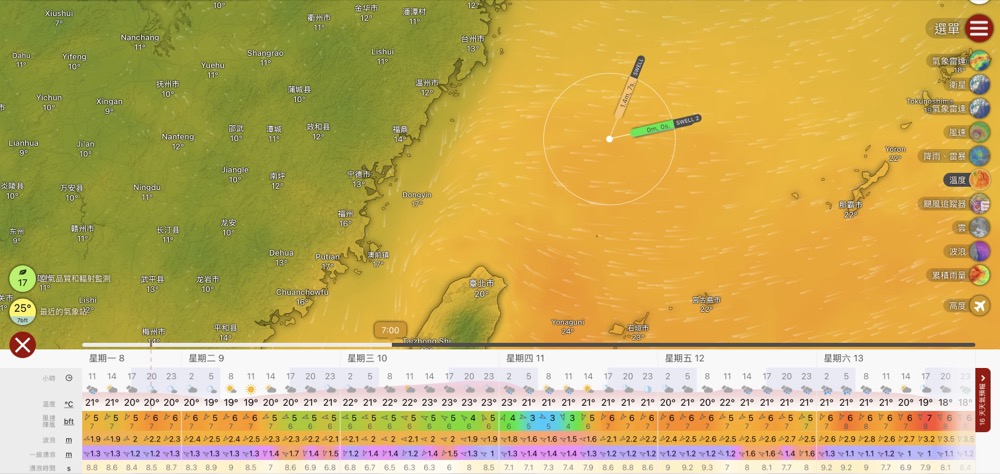 利用小程式,此為目前預測,請調整欲查詢之日期時間,資料來自windy.com