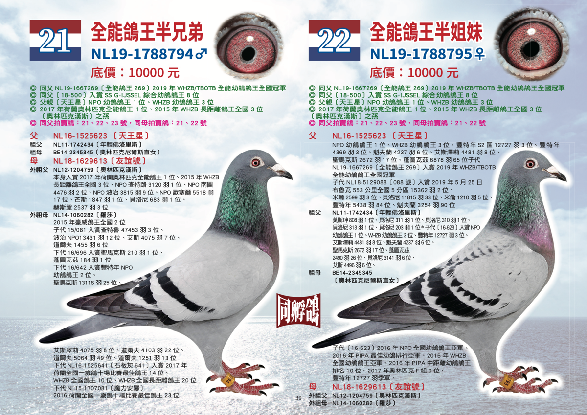 2019年12月21日 荷蘭巨砲 威廉迪布恩拍賣會-拍賣鴿介紹!拍賣鴿介紹 1-25